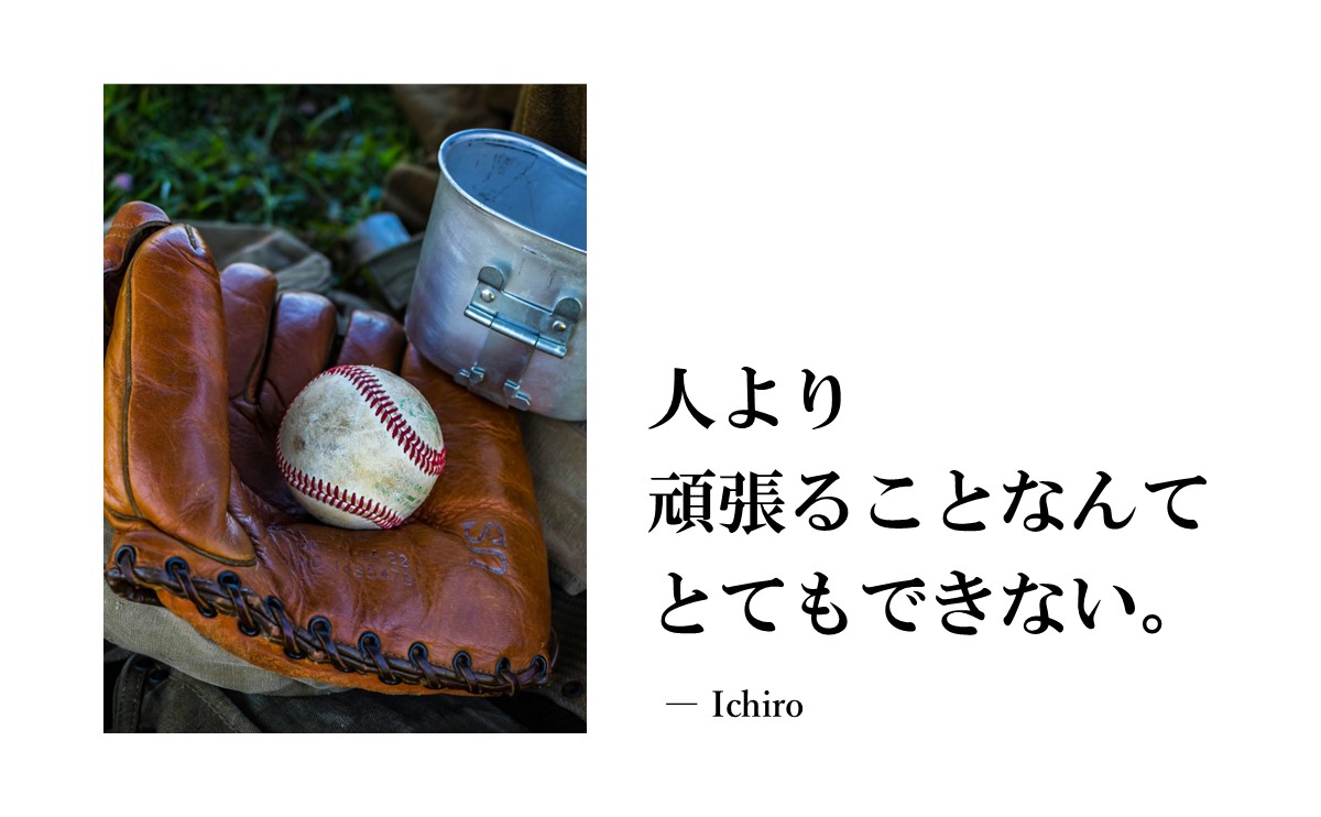 | 日米の野球界で前例のない記録を積み重ねてきた選手として、「イチロー」は名を刻んでいる。身長は180cmにも満たない、しかしその決して大きくない体で、メジャーリーグでは10年連続200安打をはじめとする偉業を成し遂げた。日本を代表するアスリートとして、愚直な努力の人として、イチロー選手の生き様は尊敬されている。そんなレジェンドの引退会見で語られた言葉の数々は、多くの人の心を前向きにする力があるようだ。 |