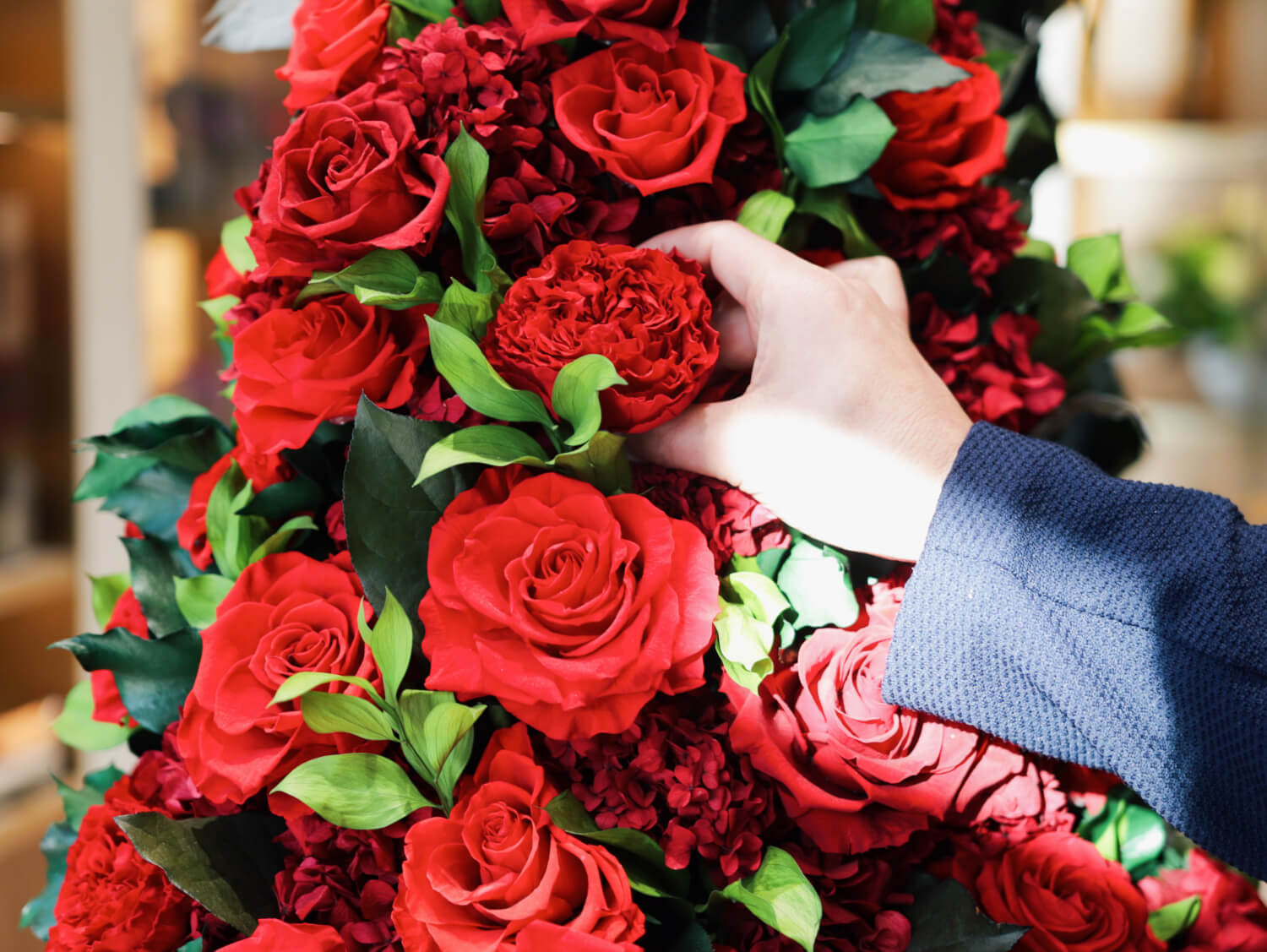 「1番いい例は、開店・開業祝いや社長就任などで贈られる『胡蝶蘭』だと思います。胡蝶蘭は美しい花ですが、日が経つにつれてどんどん花が取れていって、最後は鉢と棒になります。スタッフが忙しいなか水をあげるのは手間だし、分別も大変です。でも、プリザーブドフラワーならコーポレートカラーに合わせたり、ロゴを形作ることもできる。そうすると、贈り先の方々も自分の仕事に集中できるし、本当に相手のことを想った、自分のエゴではない贈り方ができるようになります」